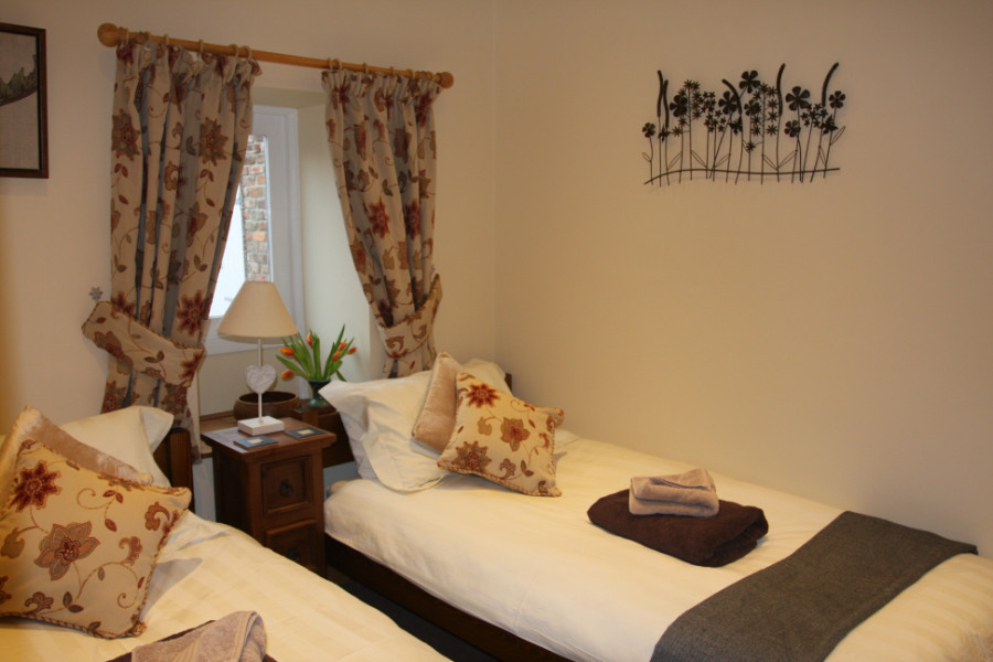 Guillemot Cottage sleeps 4 in a double and twin room each with their own en suite. The twin room has a bath over a shower and the double has a large walk in shower. The cottage has the added advantage of being on the ground floor with only 2 steps to the twin room.